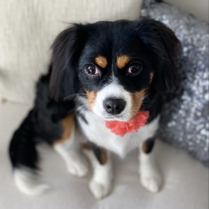 A classic and gorgeous representation of the majestic Bernese Mountain dog with all the exceptional bells and whistles! He is handsomely wrapped in a handleable and perfectly designed tri-colored package. He is a calm, sweet, gentle and obedient little guy with the eager to please intelligence of a Cavalier. His tail never stops that gentle sway of happiness. He sheds little and minds much. Potty training was a completed task in 2 days as his tenderness of spirit is over run with the desire for you to be pleased. Ever since he was tiny he has reacted to a deep sigh as a sign of correction. That correction is immediately met with a lay down, head on the floor, sad eyed ‘I’m sorry’. He is tender hearted. Not so much a lap dog as he is most often found on the floor in a position where he can observe his ‘pack’ by guarding the door and always keeps a watchful eye out on the behalf of the family. With exceptional off-leash obedience he enjoys hiking and loves his ball. His deepest desire is to love all and disappoint none in dogs and humans alike. He is highly social and confident yet a gentle little bestie. As Mary Poppins would say “He is practically perfect in every way!” We could not be more grateful to have this spectacular boy in our lives.